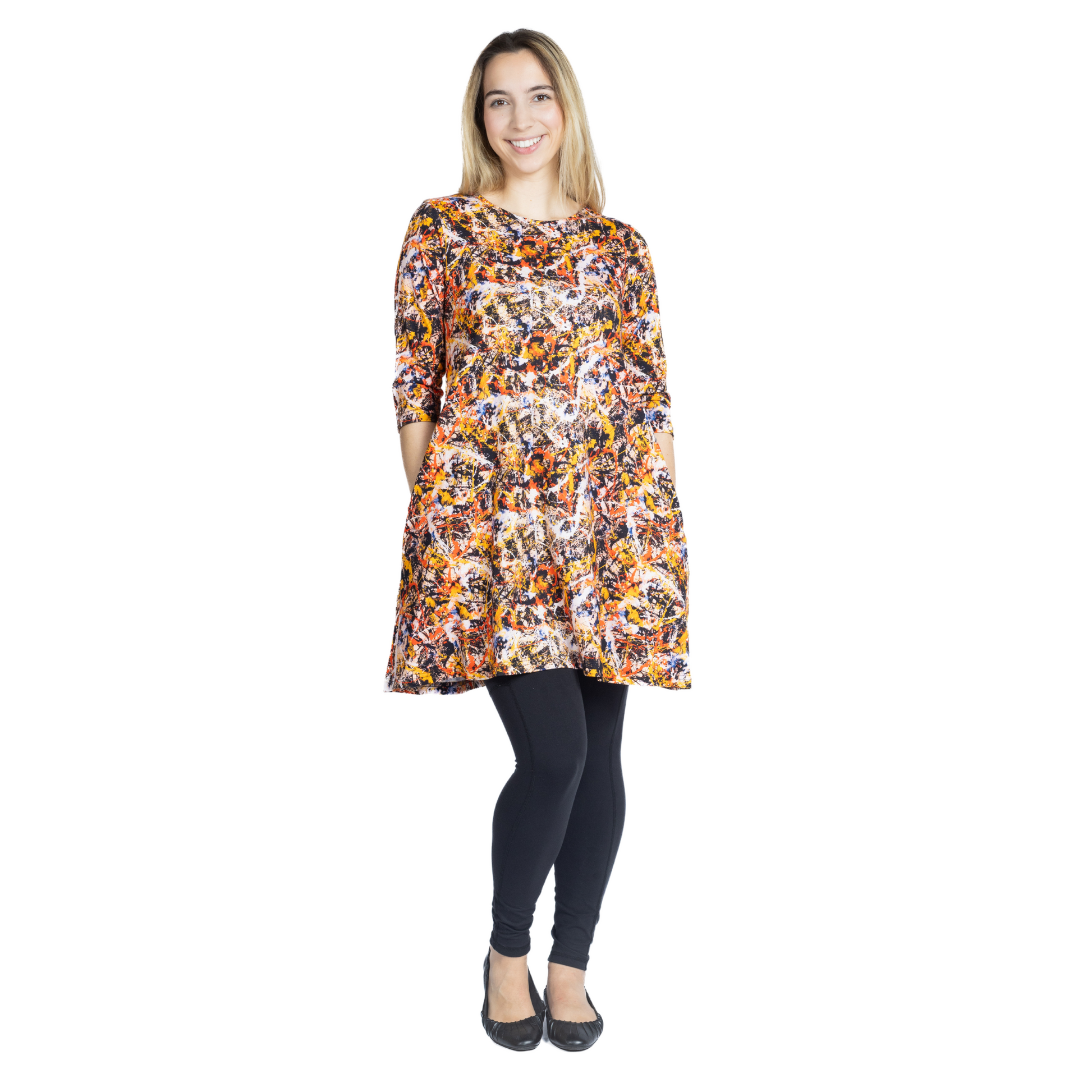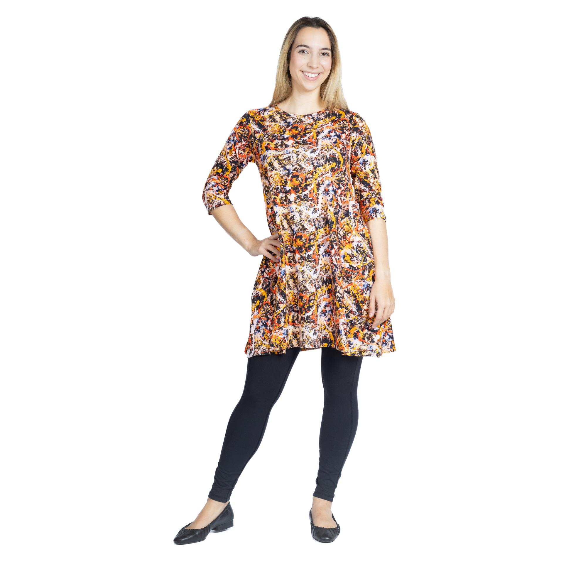 Inspired by Jackson Pollock's legendary painting Convergence, this tunic transforms abstract expressionism into a wearable statement of creativity and confidence. Every inch of this design captures the vibrant energy of Pollock’s brushstrokes, with its bold splashes of color and dynamic composition. The intricate layering of reds, yellows, blacks, and whites creates a mesmerizing pattern that exudes movement and life. With the Abstract Convergence Tunic, you’re not just wearing fashion—you’re wearing a piece of history!