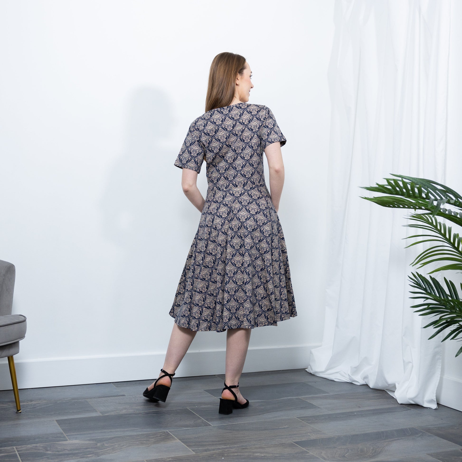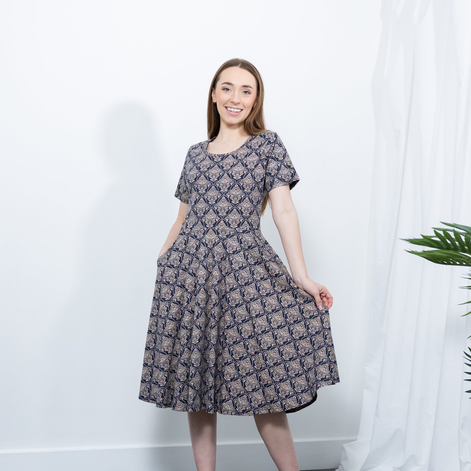 - Short sleeves, 3/4th circle twirl adult dress with pockets