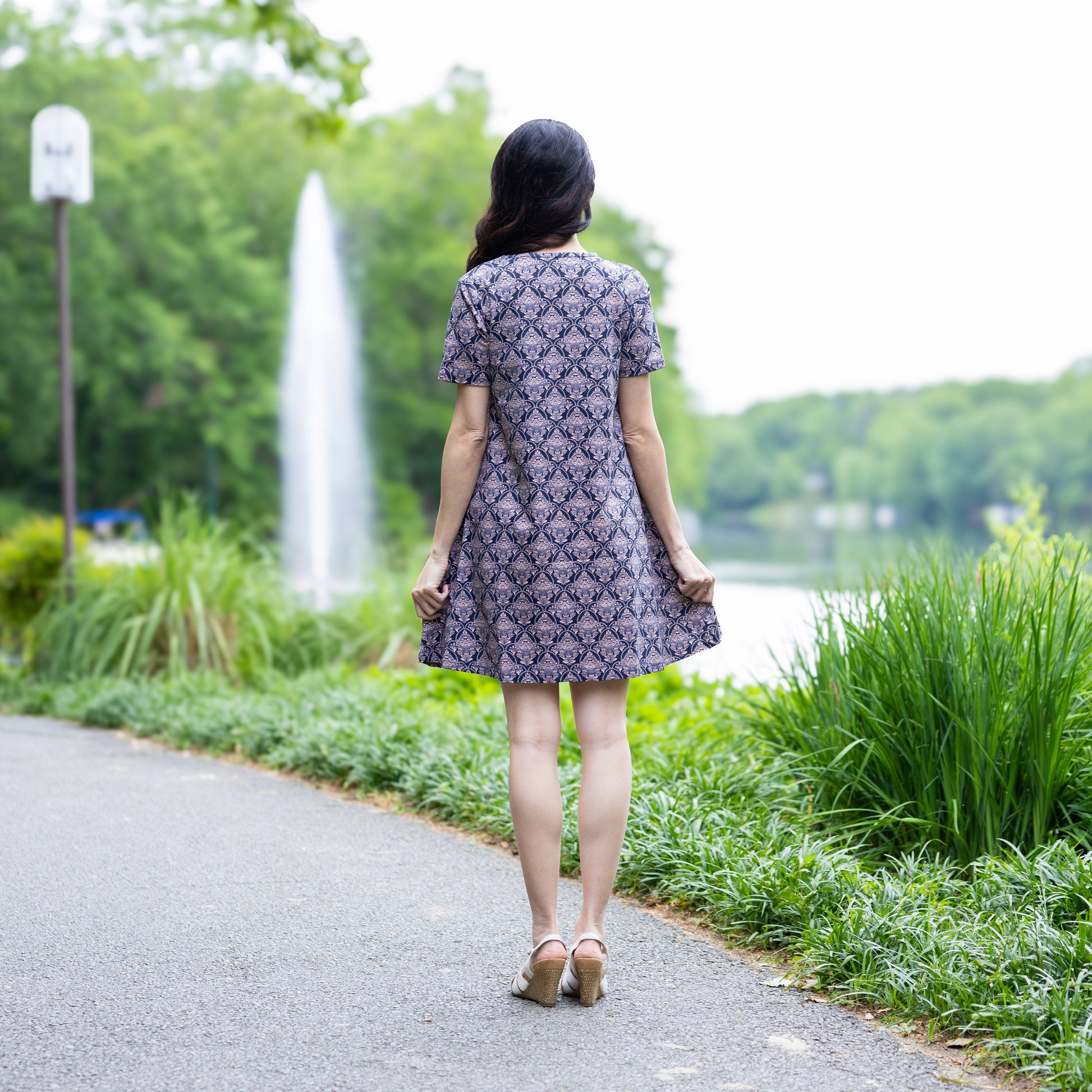 - Dress can be pulled over the neck and have no fasteners or zippers.