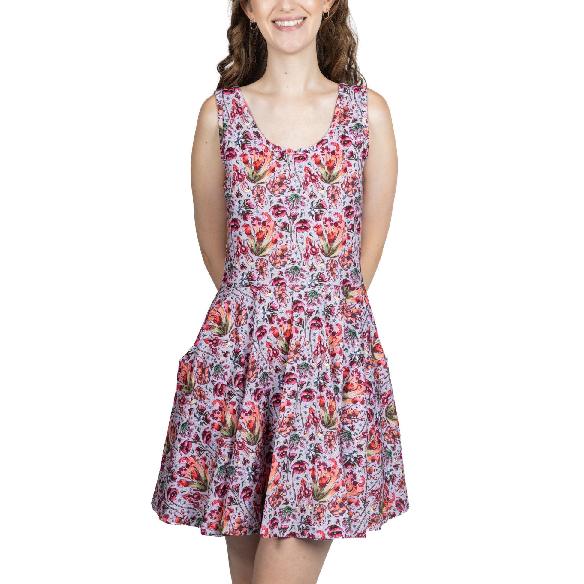 Inspired by the mysterious allure of Venus flytraps, pitcher plants and more, this dress is a botanical masterpiece. Carnivorous plants trap and digest insects and animals for their nutrients. Embrace the untamed beauty of the natural world and unleash your inner wildflower with our carnivorous plants design dress. Dare to stand out and let your style speak volumes.