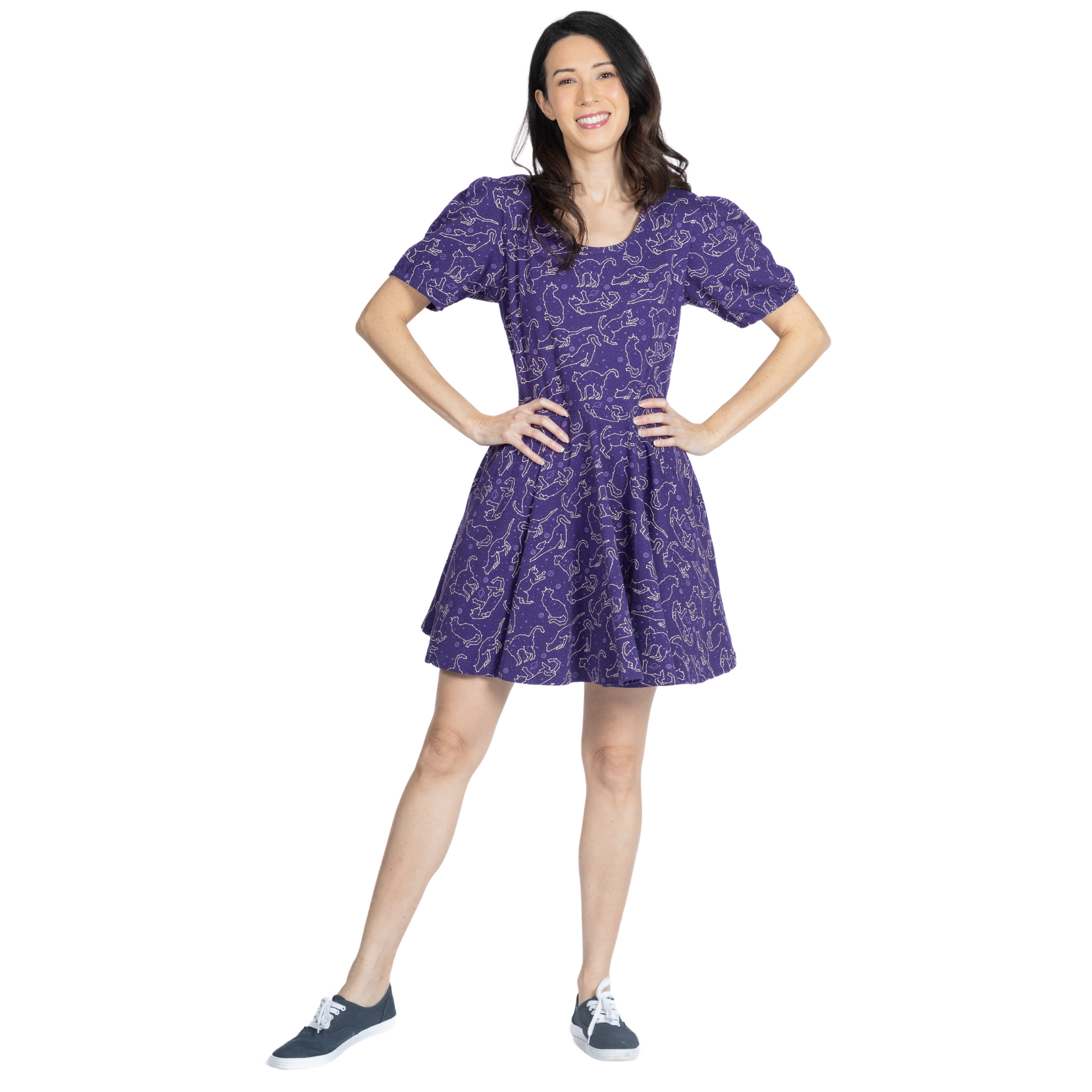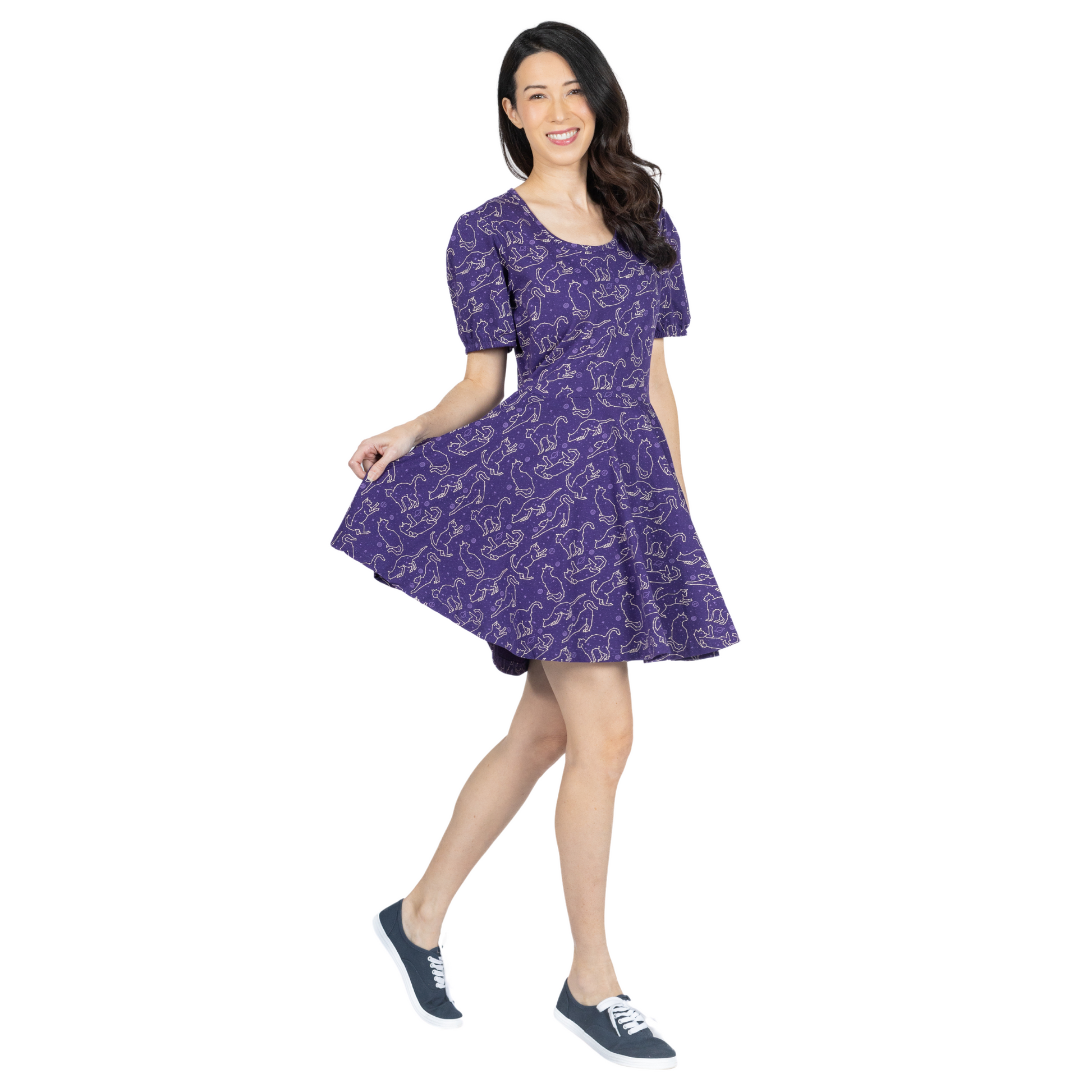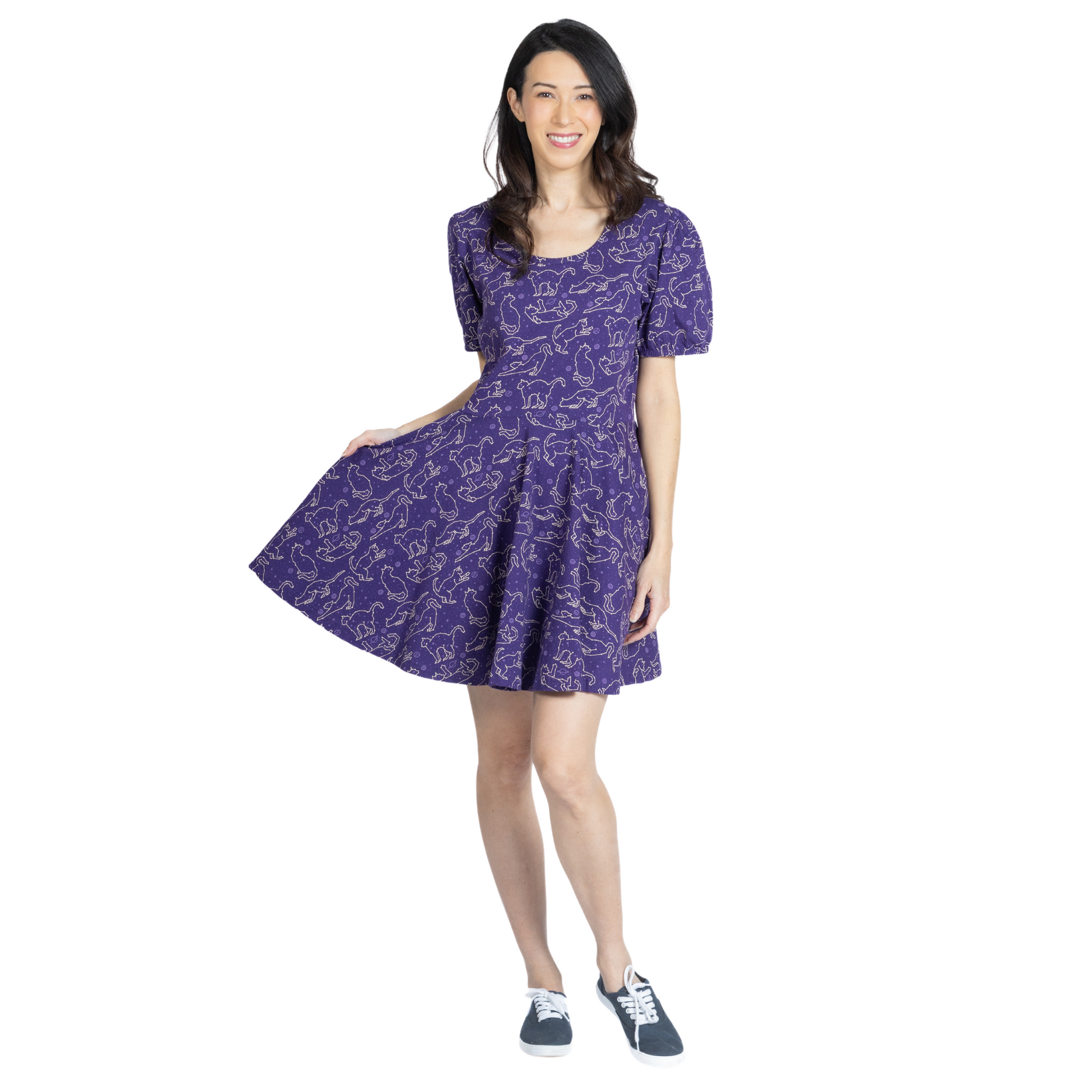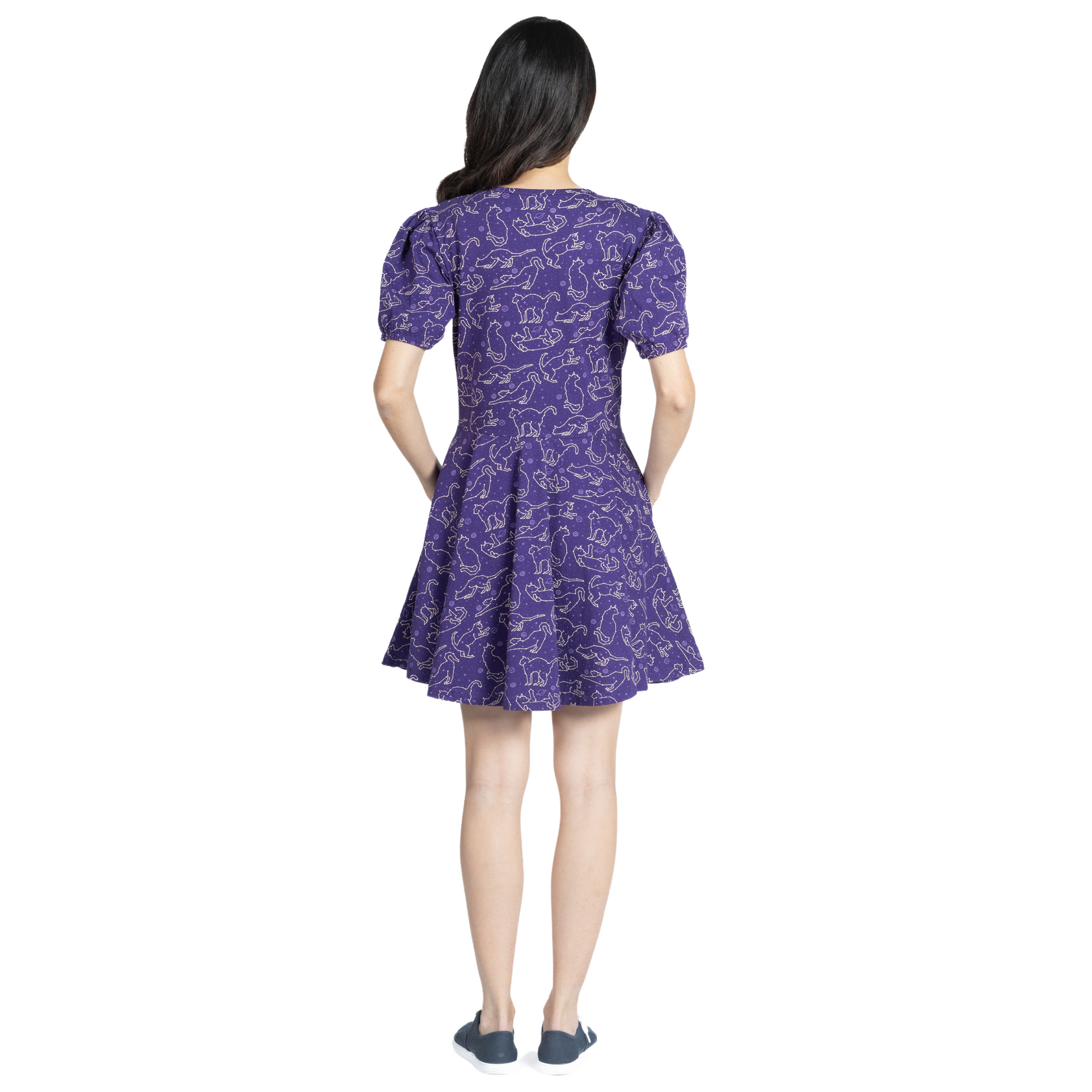 Cats Constellations Glow-in-the-Dark Puff-Sleeves Skater Dress