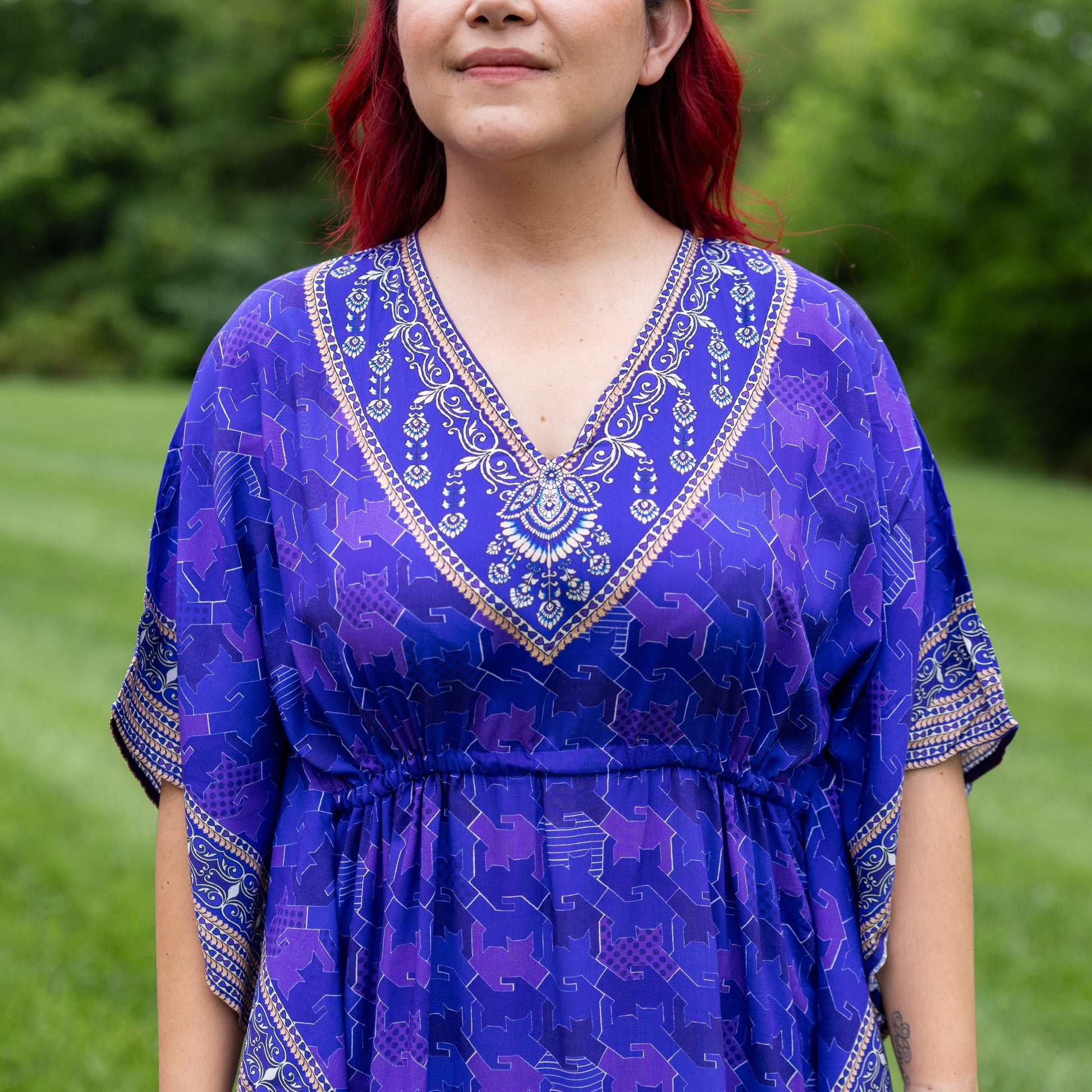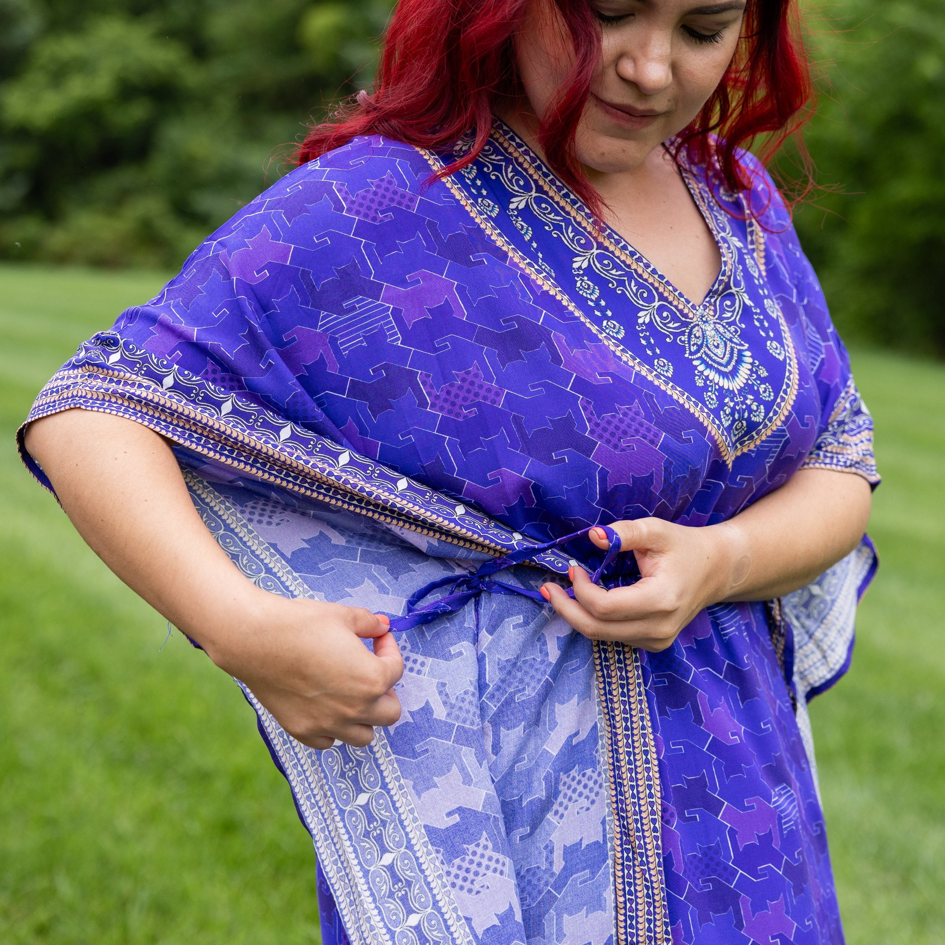 - Pockets are located on the inside of the kaftan, a few inches below the waist drawstring