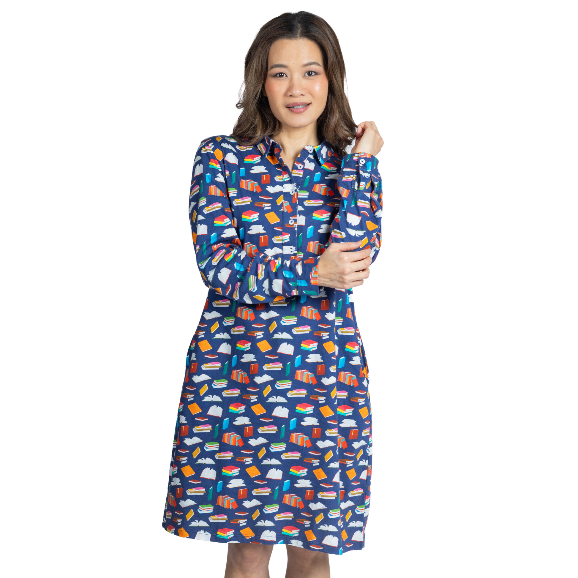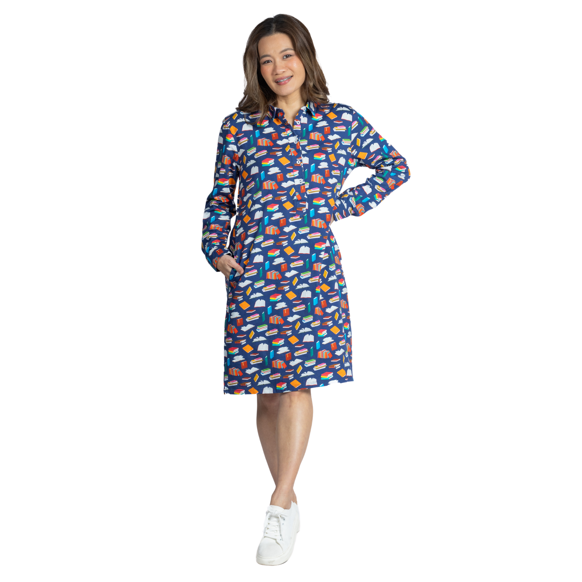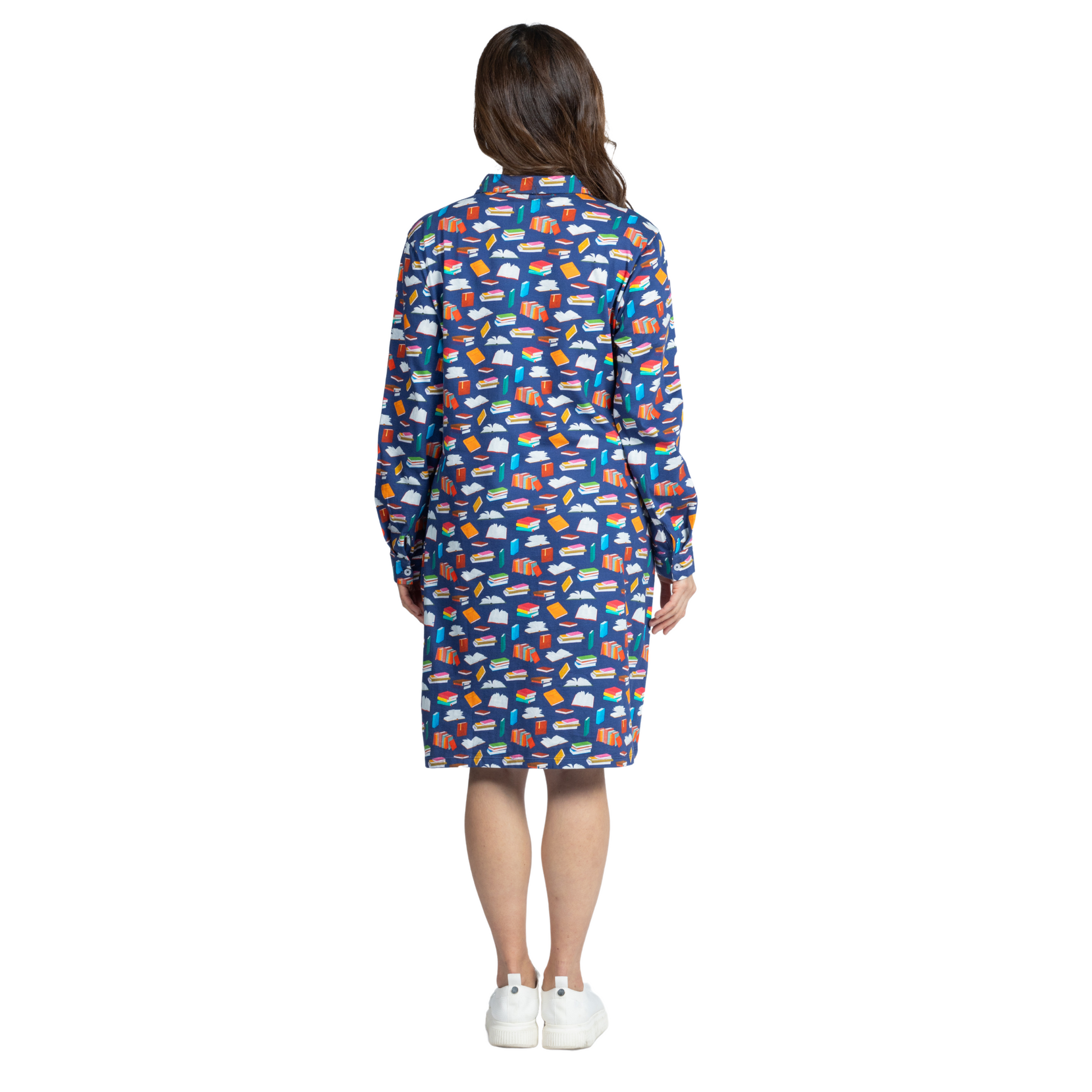Celebrate your love for literature with the Book Lover’s Dress, a vibrant design that brings the magic of stories to life! This whimsical print features stacks of colorful books scattered all around, creating a pattern that’s as dynamic and captivating as your favorite library. This dress has best-seller written all over it! Wear this magical dress and let your wardrobe tell a story worth sharing!