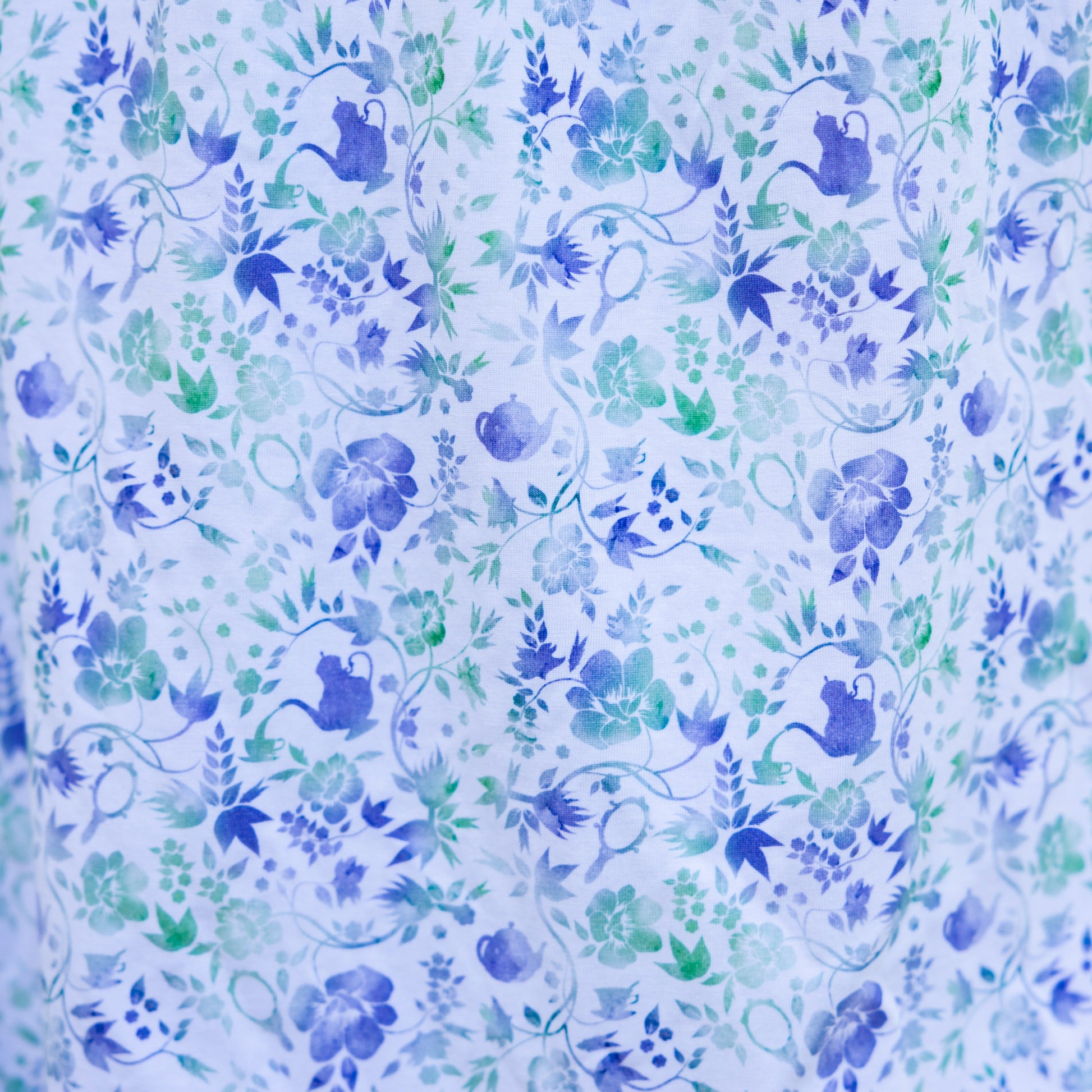 Pour yourself a cup of charm. This dress is a love letter to the quiet rituals of Regency life—afternoon teas, stolen glances in gilt-framed mirrors, and conversations laced with wit. Adorned with delicate teacup illustrations and ornate vintage mirrors, this design evokes the drawing rooms of Austen’s world, where every sip and gaze carried unspoken meaning.