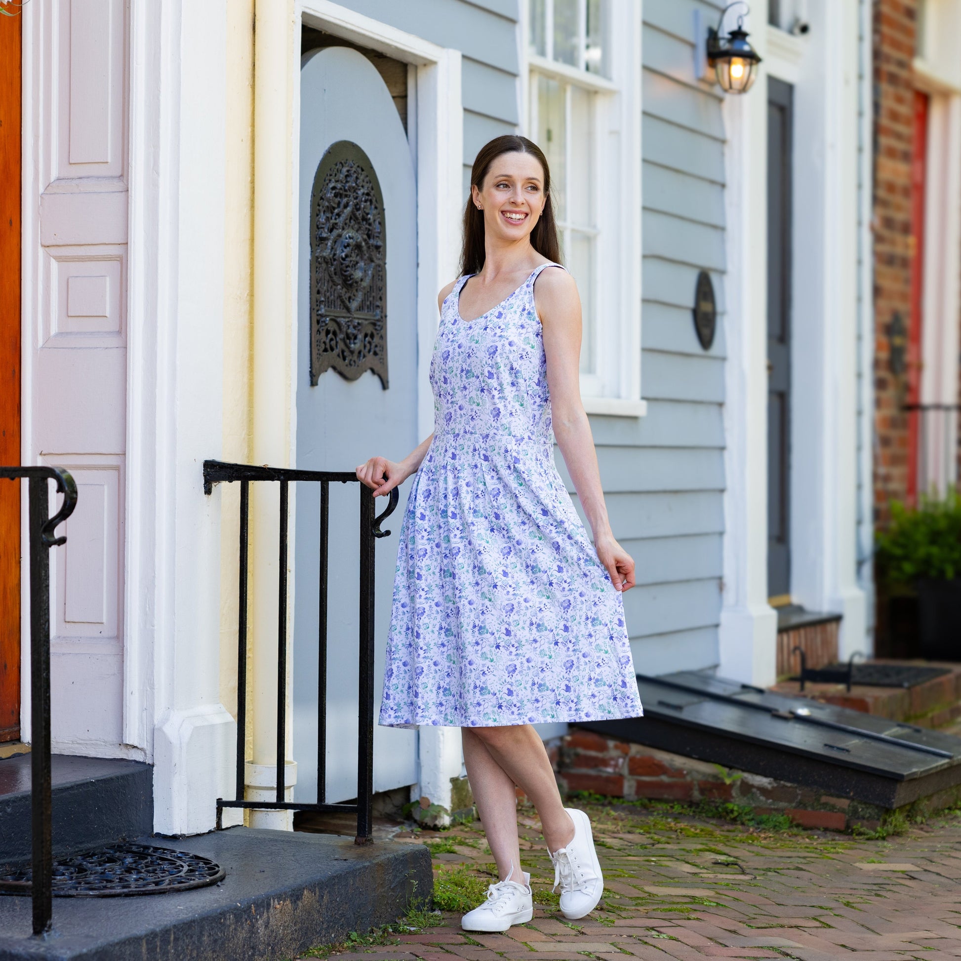 - Sleeveless adult dress with pockets and slight scoop V-neck