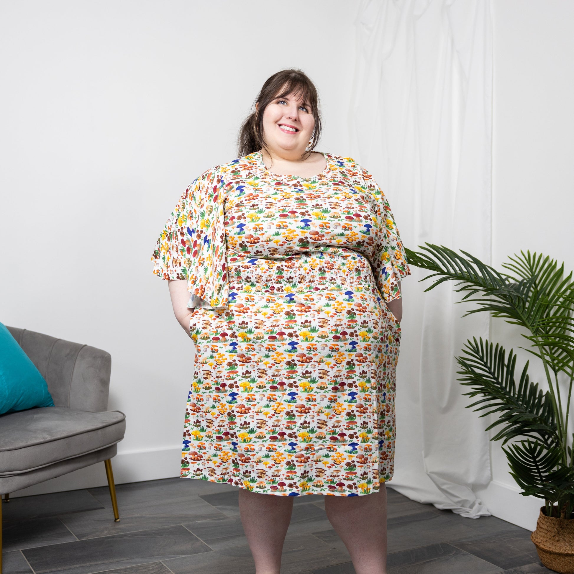 - Flutter Sleeves dress with elastic waist, pockets, and boat neckline