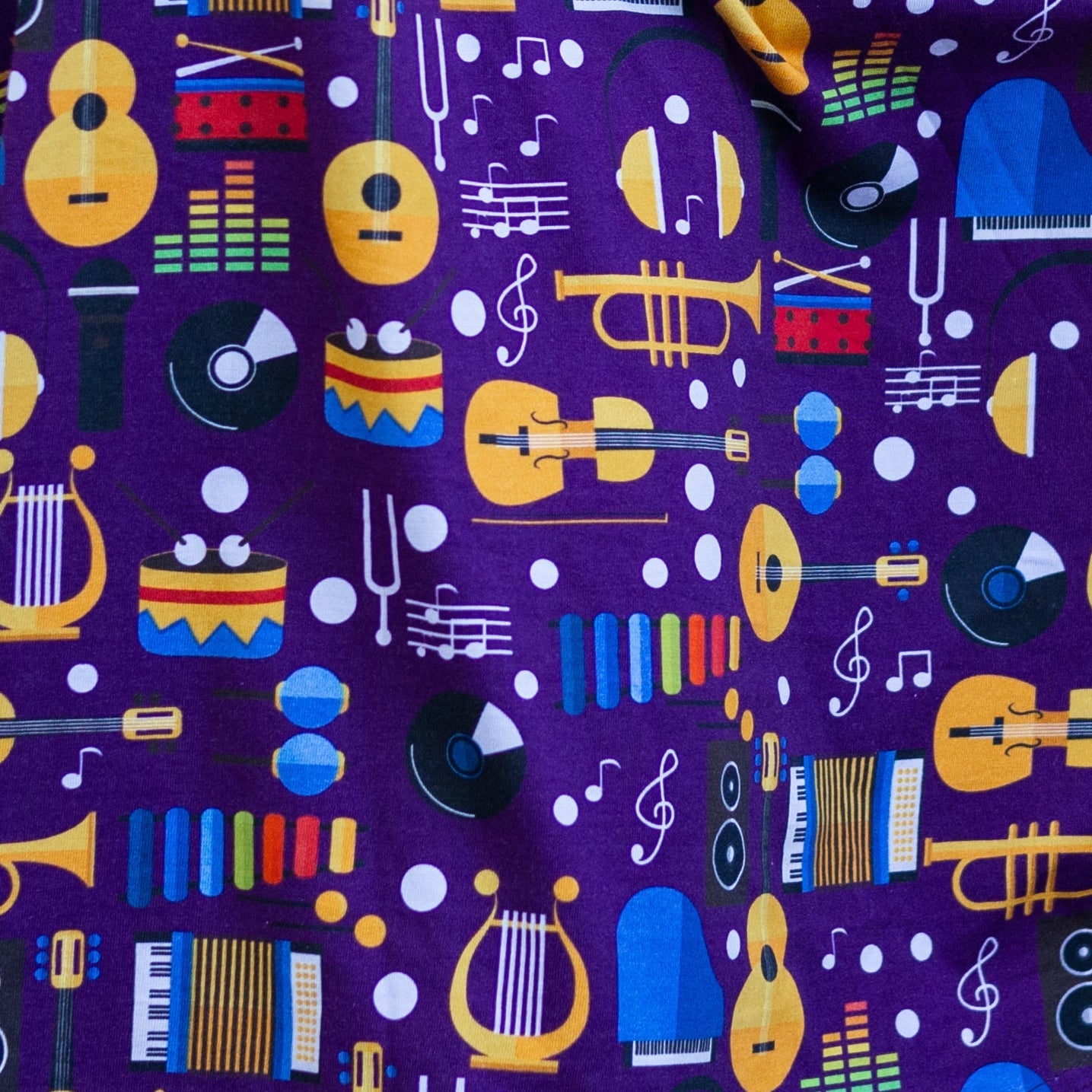 - Color: Purple with multicolored musical instruments design