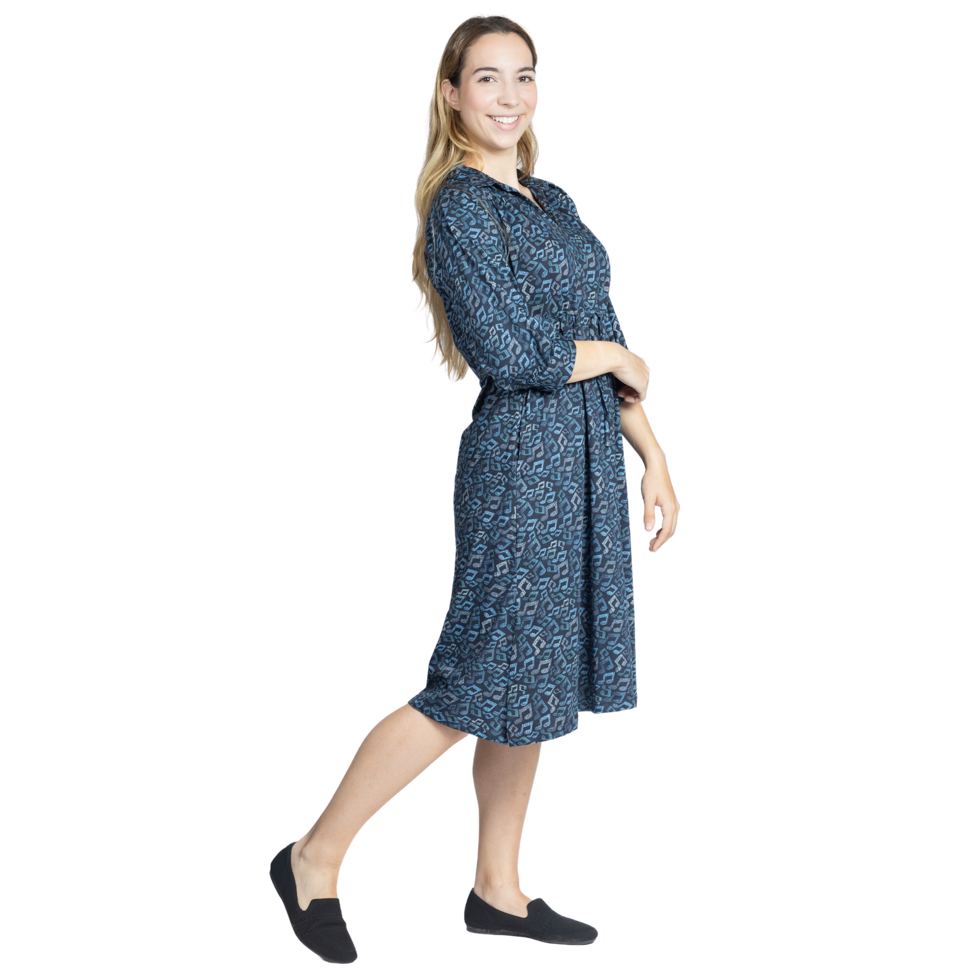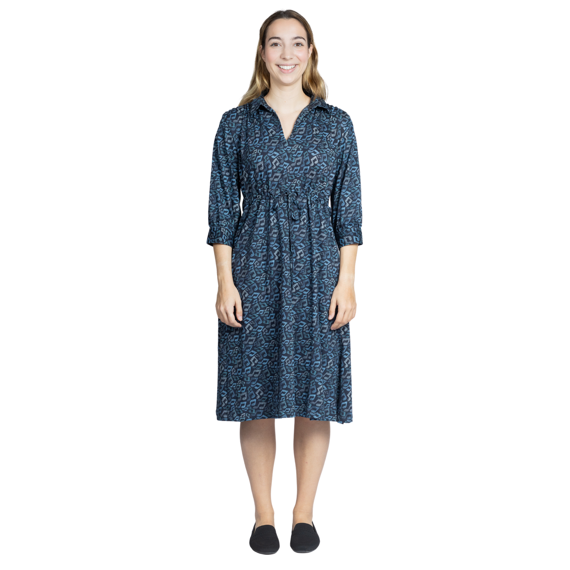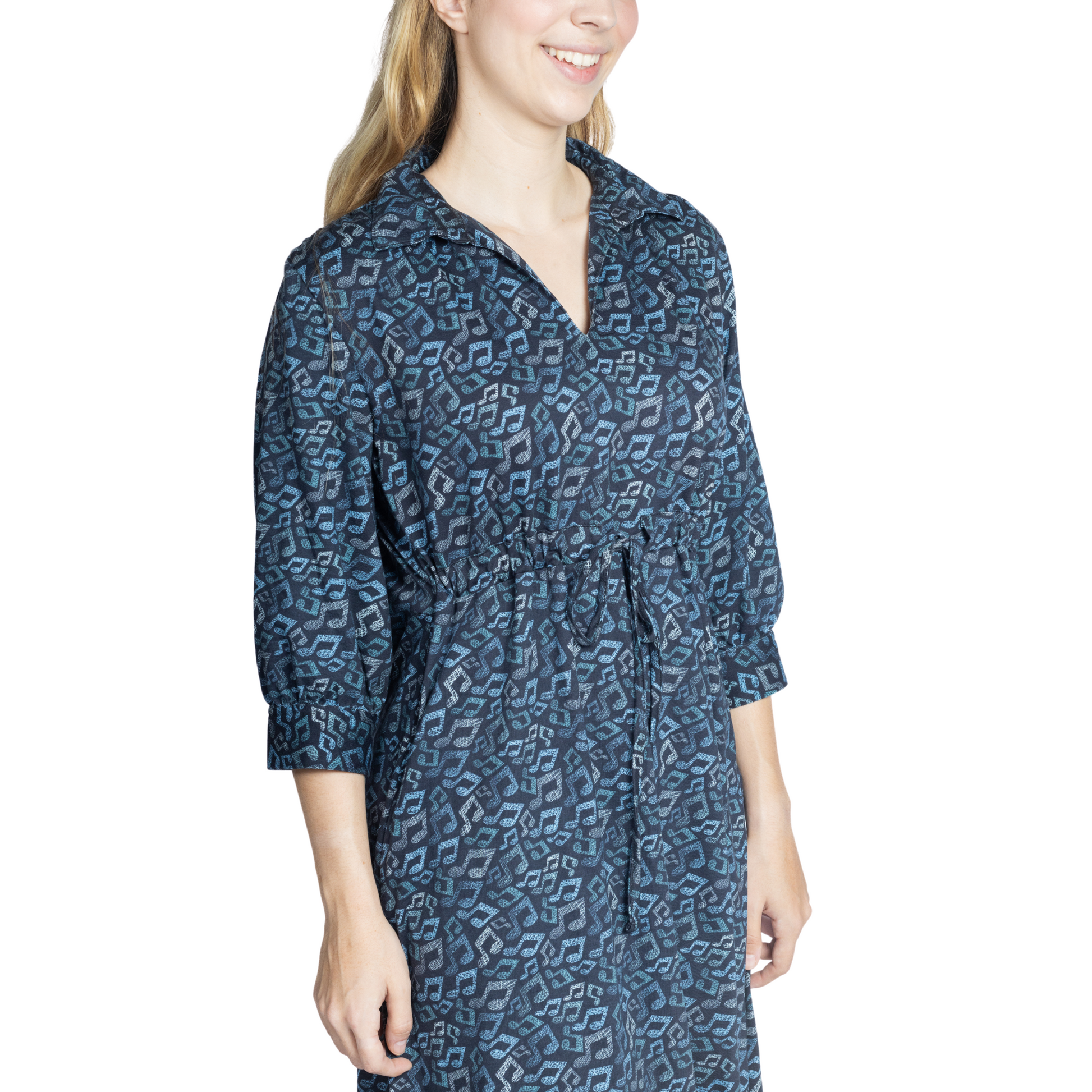 Musical Notes 3/4th Sleeves Drawstring Dress