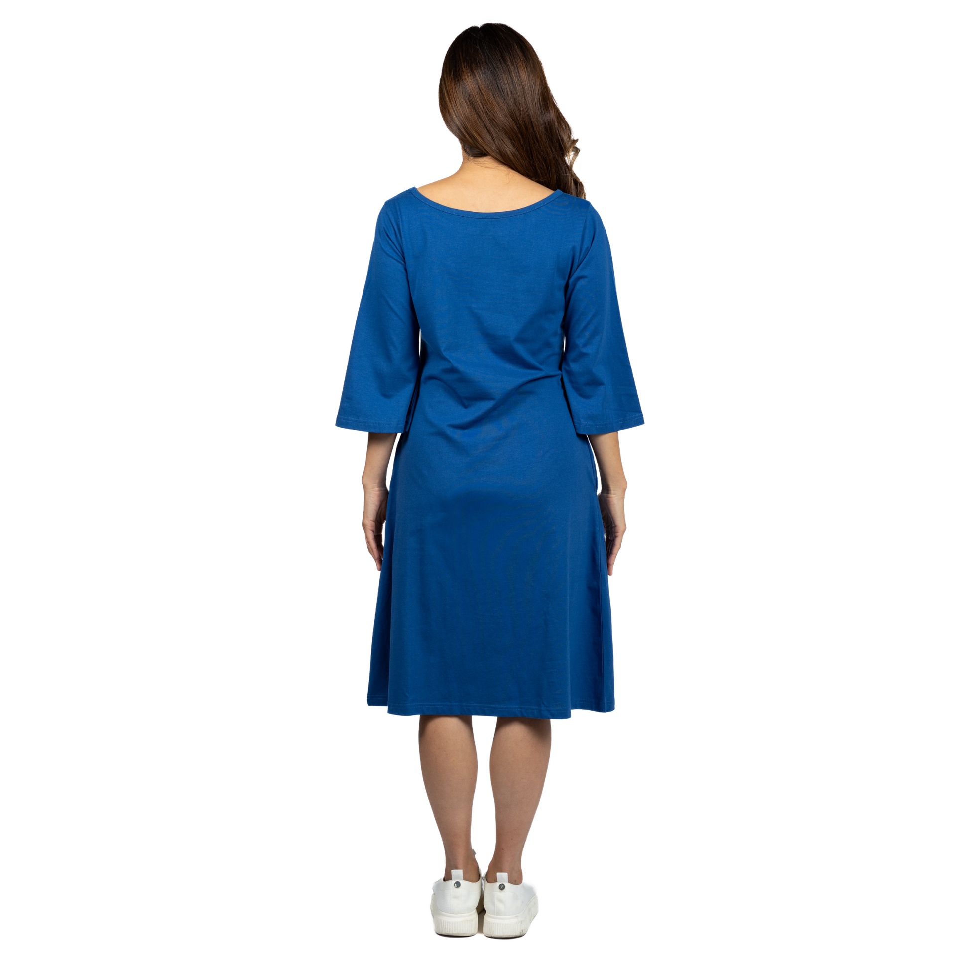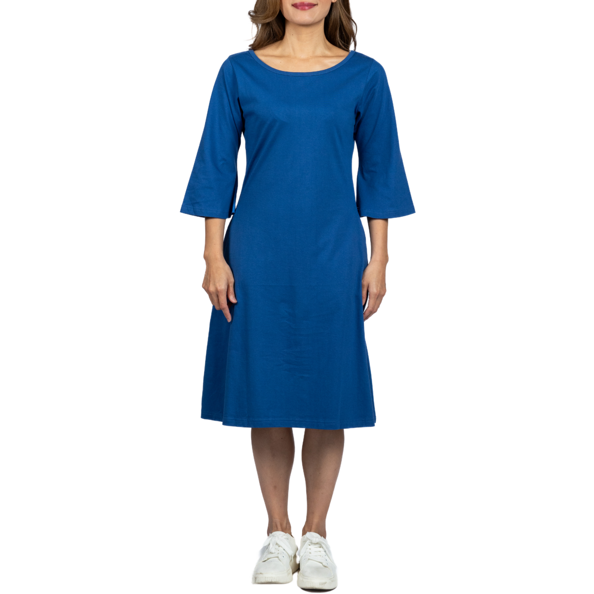 This timeless blue dress features a stunning hue that exudes both sophistication and versatility. Whether you're dressing up for a special event or keeping it casual, this dress is your canvas to create the perfect look!