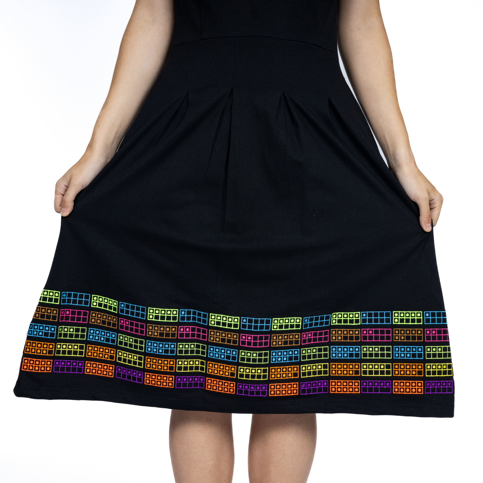 Make learning fashionable with the Number Dot Blocks Dress, a vibrant piece designed for adults who love to stand out while embracing a playful edge. This dress features a unique pattern of colorful number dots arranged in geometric block formations, blending the joy of learning with bold fashion!