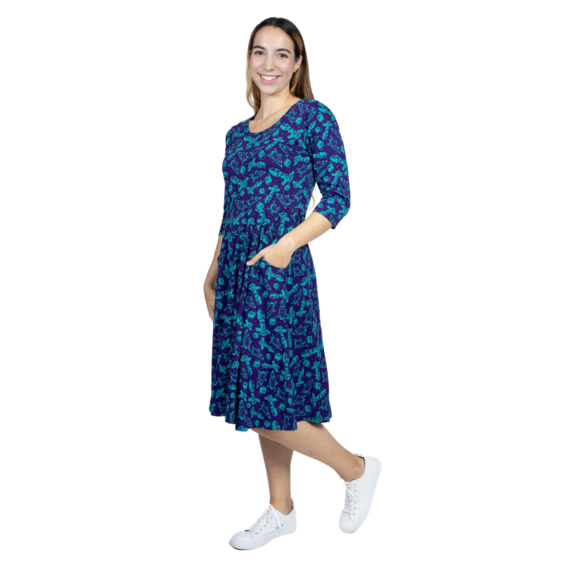 Outer Space 3/4th Sleeve Twirl Dress