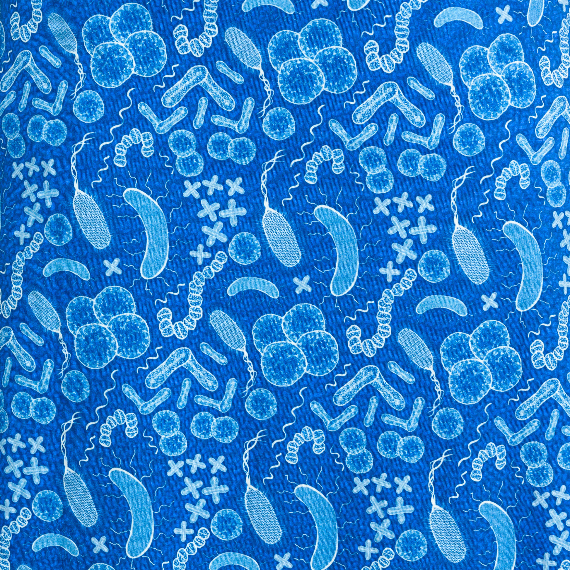 - Color: Blue and white bacteria and paisley design