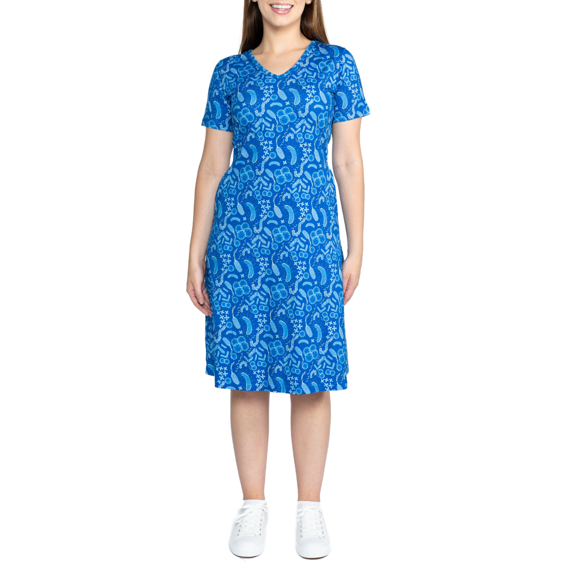 Short sleeves, a-line adults dress with v-neck and functional pockets