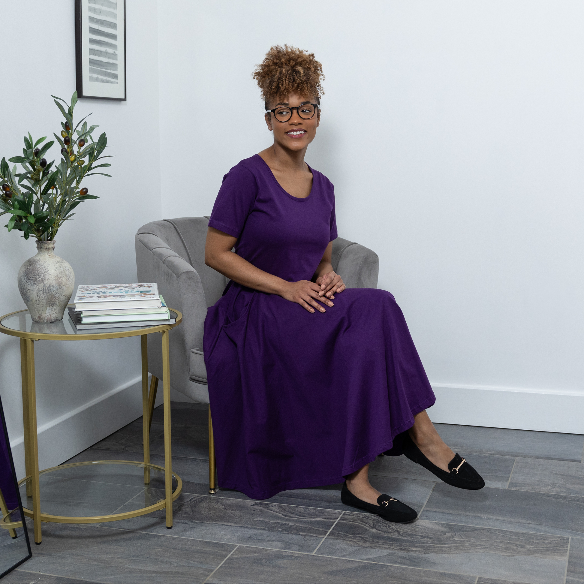 This purple dress features a stunning hue that exudes both sophistication and versatility. Whether you're dressing up for a special event or keeping it casual, this dress is your canvas to create the perfect look!