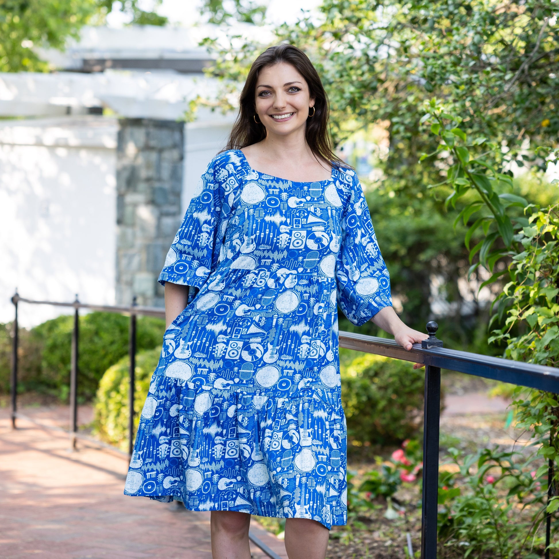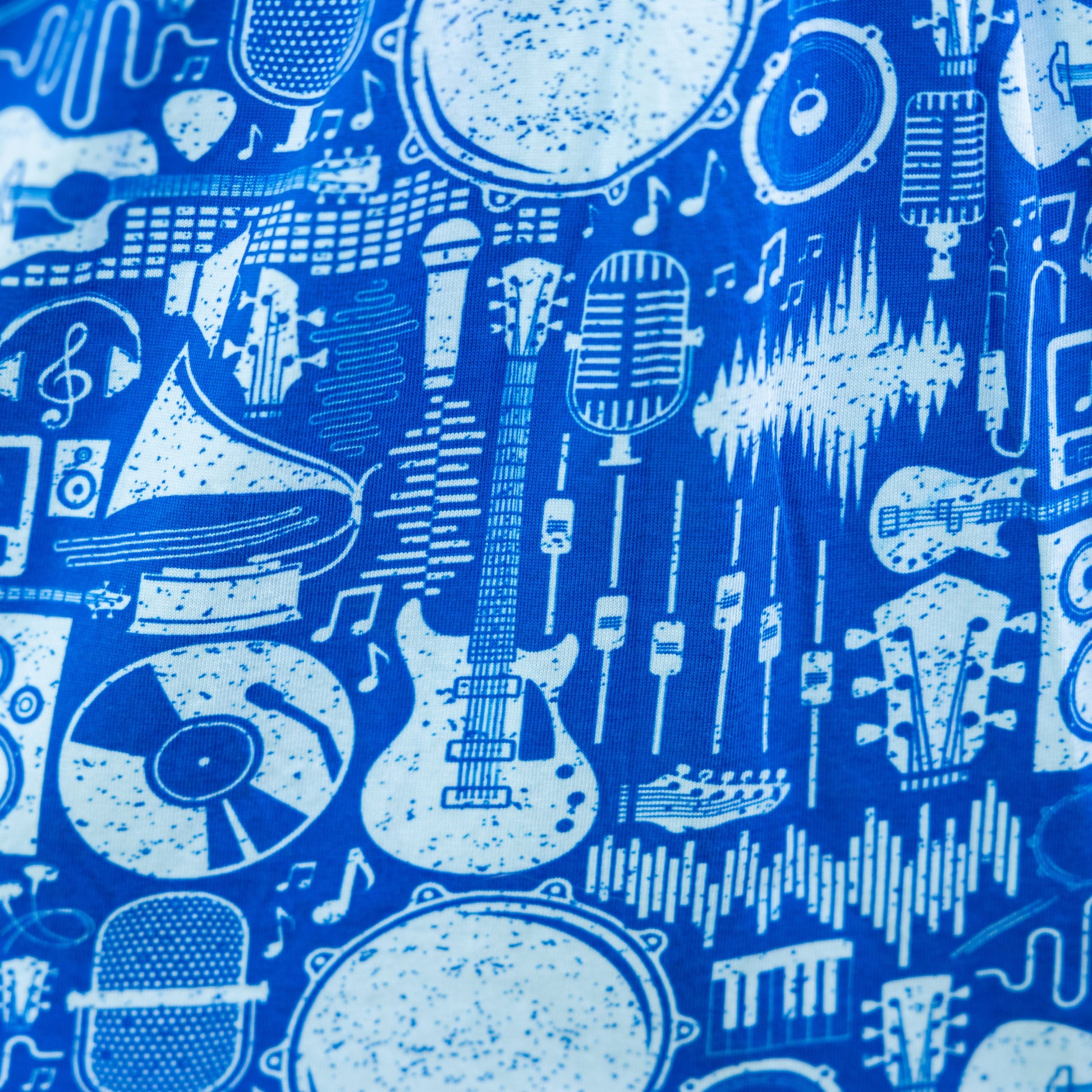- Color: Blue with light blue and white retro instruments and music notes designs