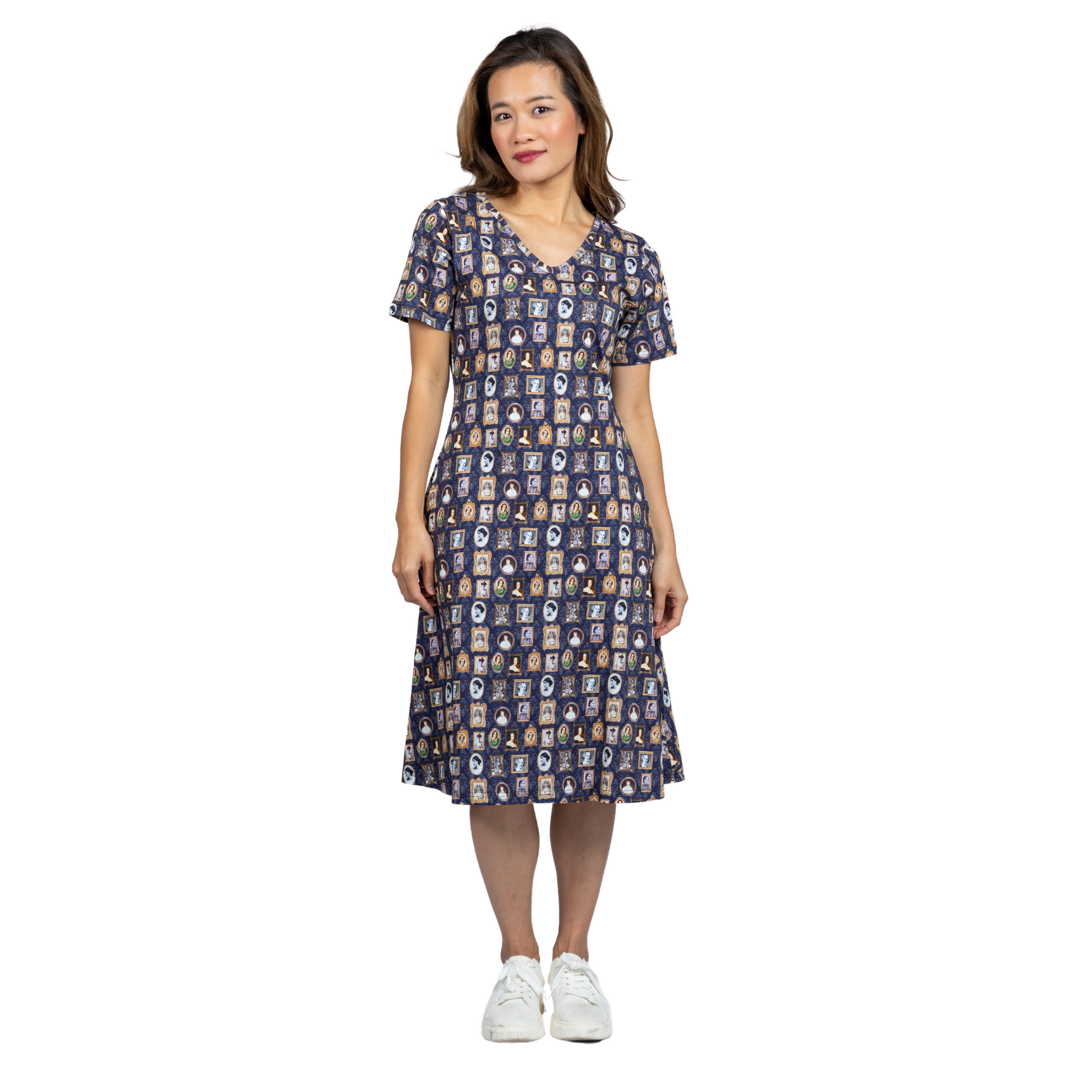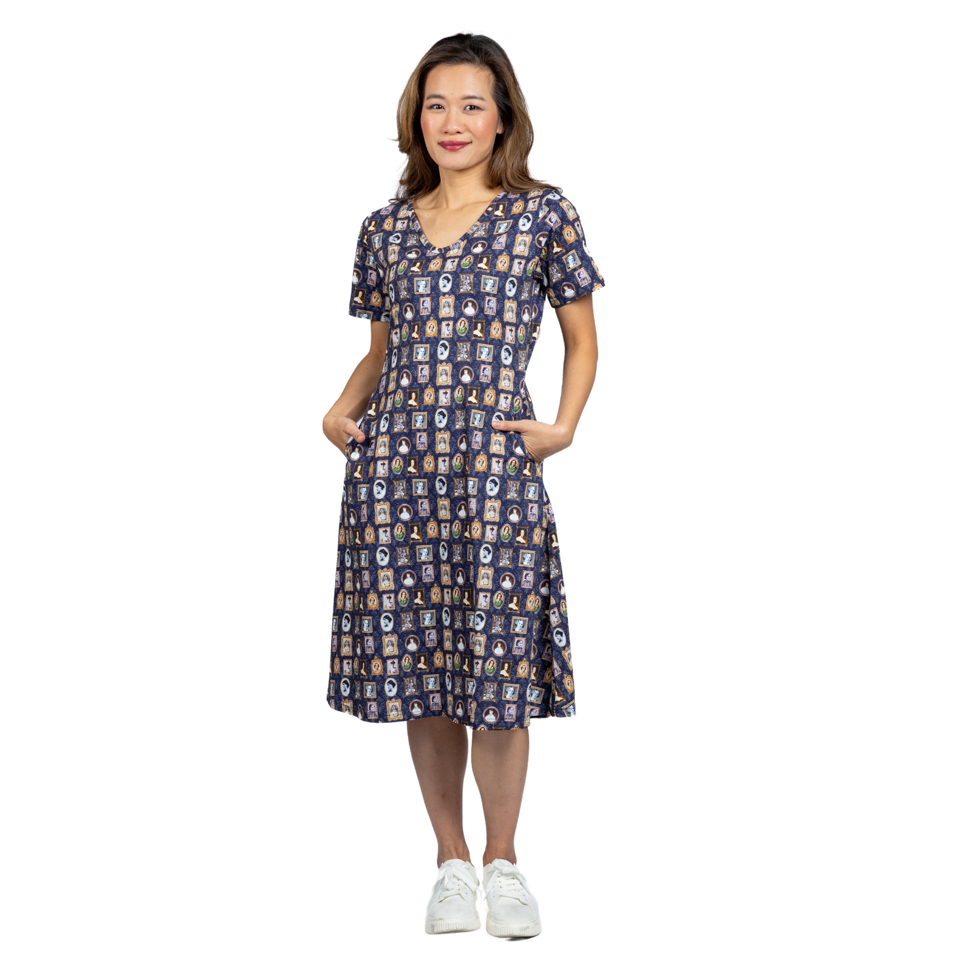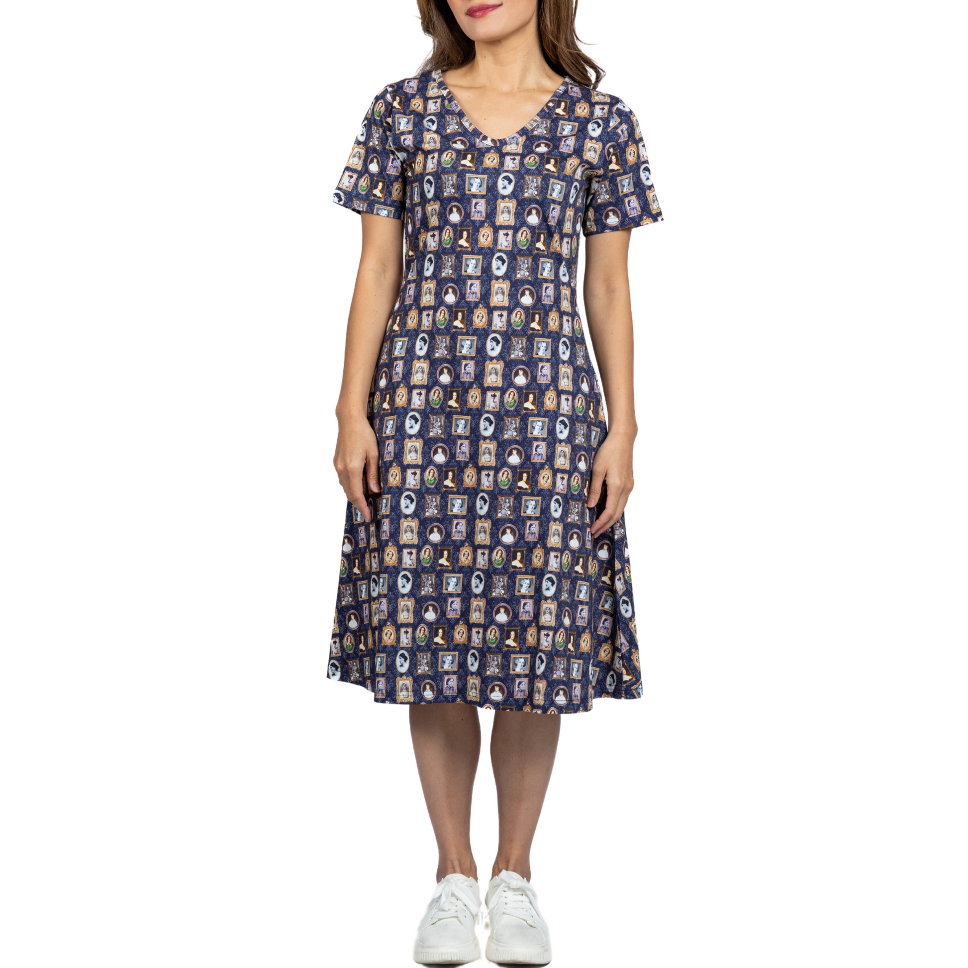 - Dress can be pulled over the neck and has no fasteners or zippers.